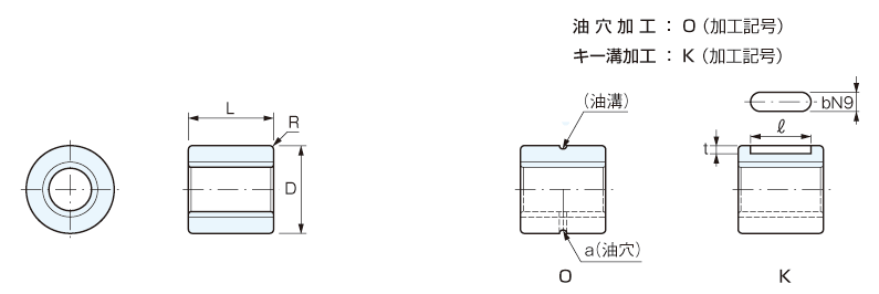 材質 公差精度 BC6(青銅鋳物) 7H 材質はすべり伝導の機能(耐摩耗、低摩擦係数)を充分満足させるBC6を使用しています。 右ネジはYNS-Rタイプになります。 左ネジはYNS-Lタイプになります